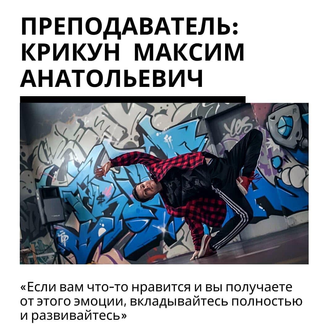 Максим Анатольевич много лет занимается этим направлением, ведь для него хип-хоп больше, чем просто танец: